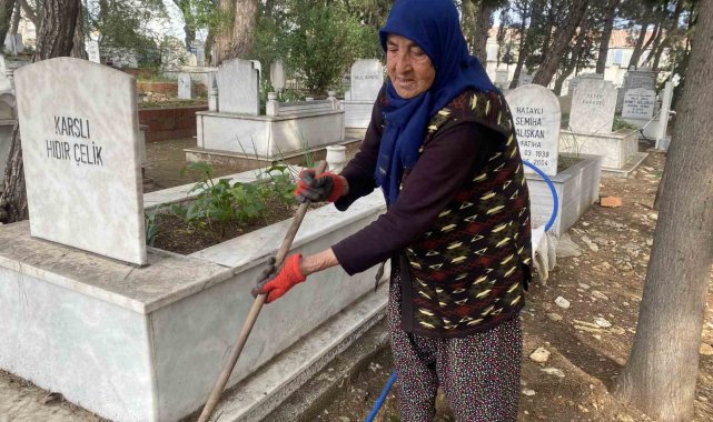 Raziye teyze 20 yıldır mezarlığı tek başına temizliyor