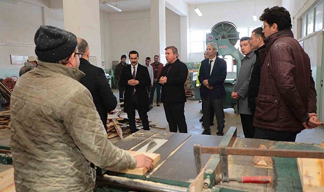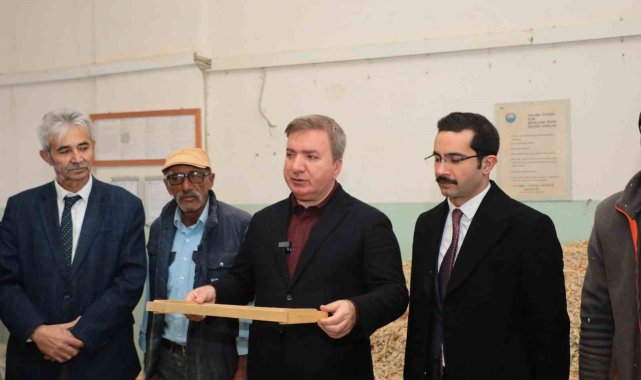 Refahiye Kaymakamlığı öncülüğünde kurulan ve yılda 2 milyon arı kovanı çıtası üretimi kapasiteli atölyede incelemelerde bulunan Vali Aydoğdu, yapılan çalışmalar hakkında Kaymakam Halil İbrahim Köroğlu'ndan bilgiler aldı.