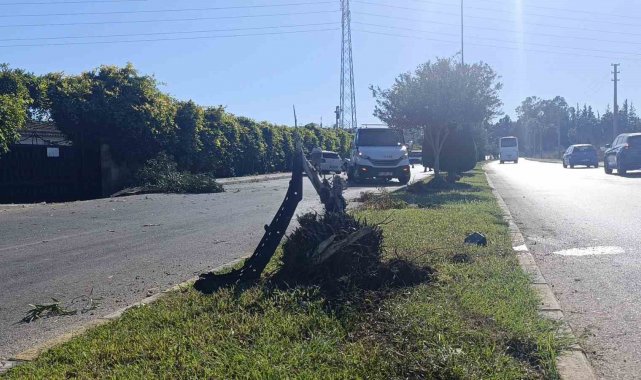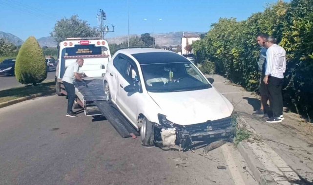Antalya'nın Manavgat ilçesinde seyir halindeki otomobil refüjdeki ağacı yıkarak yolun karşısına geçti. İstinat duvarına çarparak durabilen otomobilin sürücüsü yaralandı.