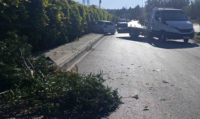Refüjdeki ağacı deviren otomobil duvara çarparak durabildi: 1 yaralı