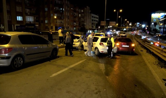 Kaza, Muratpaşa ilçesi Kızılırmak Caddesi'nde gece saat 23.30 sıralarında meydana geldi. Edinilen bilgiye göre, Kızılırmak Caddesi'nden Adnan Menderes Bulvarı'na ilerleyen 45 TM 266 plakalı otomobil, sürücüsünün direksiyon hakimiyetini kaybetmesi sonucu refüje çarpıp bulvar üzerinde yan döndü. O sırada arkadan gelen araçlar duramayarak birbirine çarptı. 45 TM 266 plakalı otomobilin yanı sıra 07 ALL 508, 34 NPZ 024, 07 BBA 376, 07 FPP 59 ve 07 GA 662 plakalı araçlarda maddi hasar meydana gelen kazada 1 kişi yaralandı. Yaralı, olay yerine sevk edilen ambulansla hastaneye kaldırıldı.