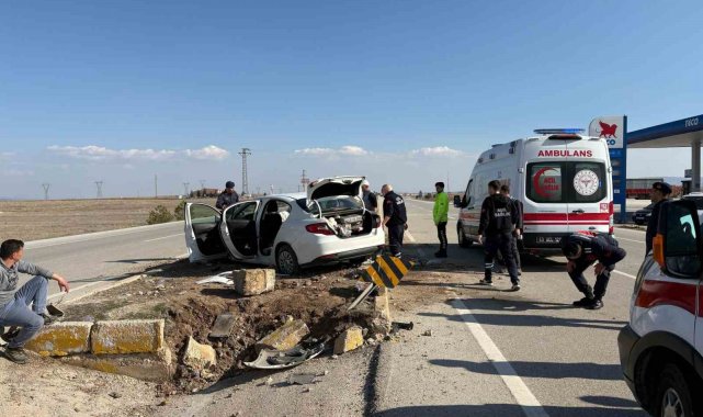Refüje çarpan otomobilde 5 kişi yaralandı