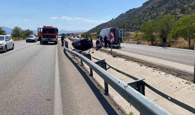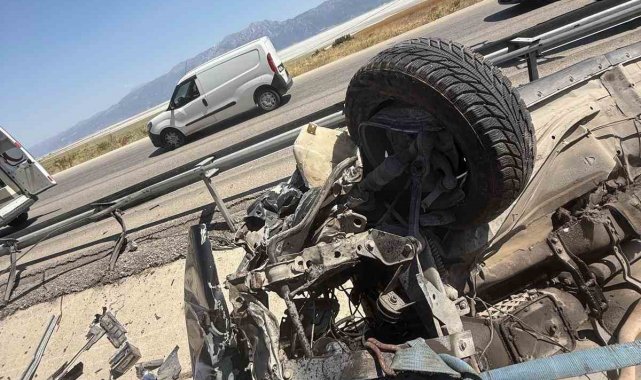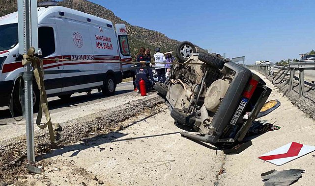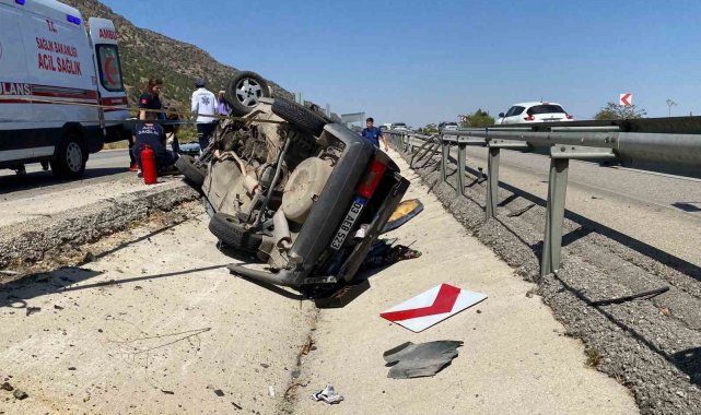 Denizli'de direksiyon hakimiyetini kaybeden otomobil refüje çarparak takla attı. Araçta bulunan 4 kişinin hayati tehlikesi bulunmazken, otomobil kullanılamaz hale geldi.