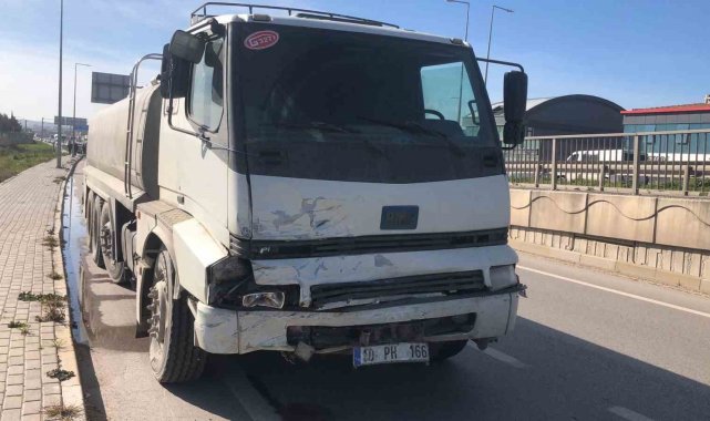 Refüje çarpıp karşı şeride savrulan otomobil su tankerine çarptı: Sürücü ağır yaralı