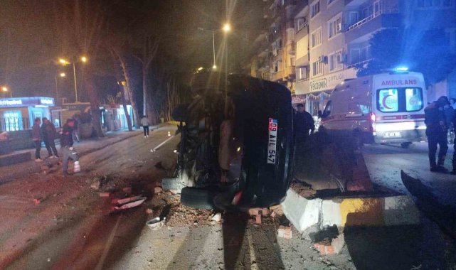 Refüje çarpıp takla atan otomobil karşı şeride geçti: 2 yaralı