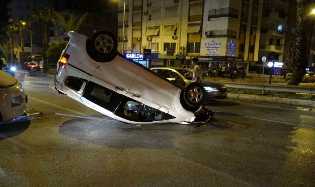Antalya'nın Muratpaşa ilçesinde meydana gelen kazada, kontrolden çıkan ticari araç refüje çarpıp taklalar attıktan sonra iki araca çarptı. Kazada şans eseri yaralanan olmazken, araçlarda maddi hasar oluştu.