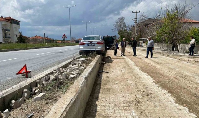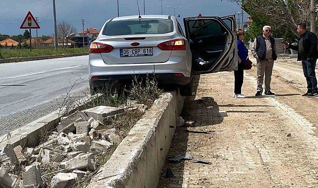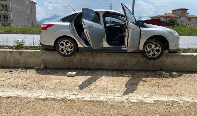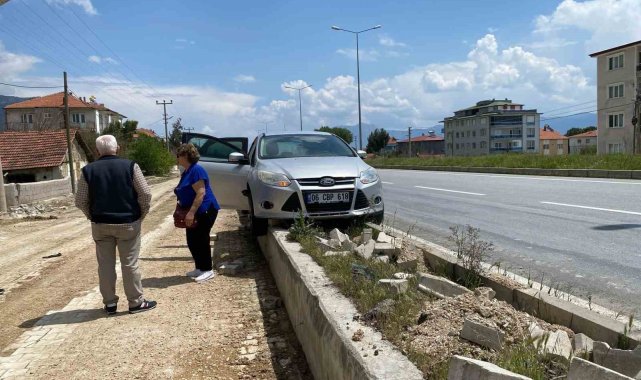 Refüje çıkan otomobildeki 3 kişi kazadan sıyrık almadan kurtuldu
