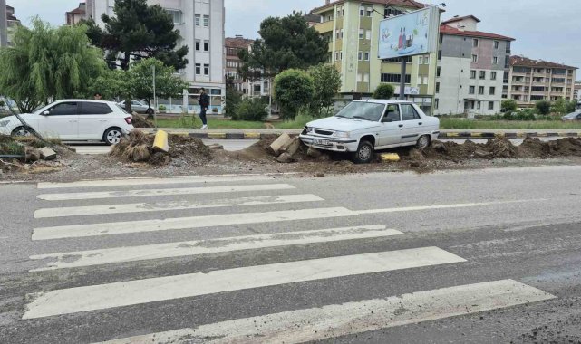 Bartın'da yoldan çıkan bir otomobil refüje çıktı. Sürücü, aracı olay yerinde bırakıp kaçtı.