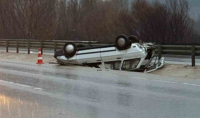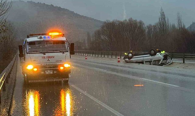 Afyonkarahisar'da kontrolden çıkarak yol ortasındaki refüje devrilen otomobil sürücüsü yaralandı.