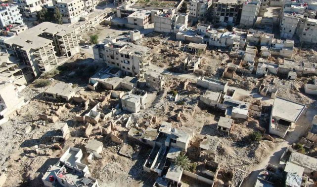 Suriye'de Esad rejiminin devrilmesinin ardından rejimin saldırıları sonucu kent ve kasabalarda oluşan hasarın boyutları her geçen gün daha da belirginleşiyor. Başkent Şam'a bağlı Deraya ilçesinde katliam yapan rejim uçaklarının bombaladığı yerle bir olan camiler görüntülendi. Rejimin çekilmesinin ardından Deraya ilçe meydanında bulunan ve enkaza dönen camiden geriye beton ve demir yığını kaldı.