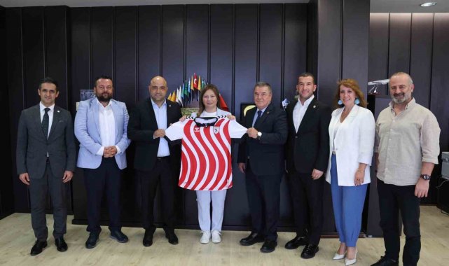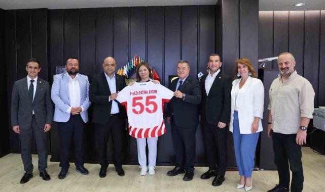 Ziyaret sonrası Rektör Aydın, kendisine hediye edilen isminin yazdığı Samsunspor formasını giyerek poz verdi.