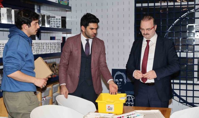 Ziyaret kapsamında merkezde yürütülen öğrenci atölyelerini de inceleyen Rektör Hacımüftüoğlu, yapılan çalışmalar hakkında yetkililerden bilgi aldı.
