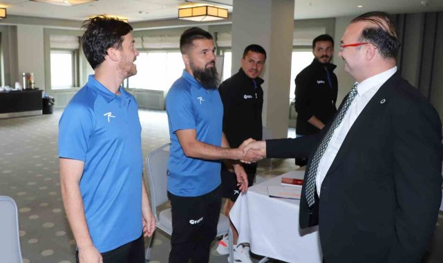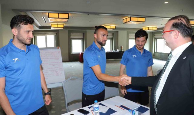 Rektör Hacımüftüoğlu, UEFA B antrenörlük eğitimi alan futbolcularla bir araya geldi