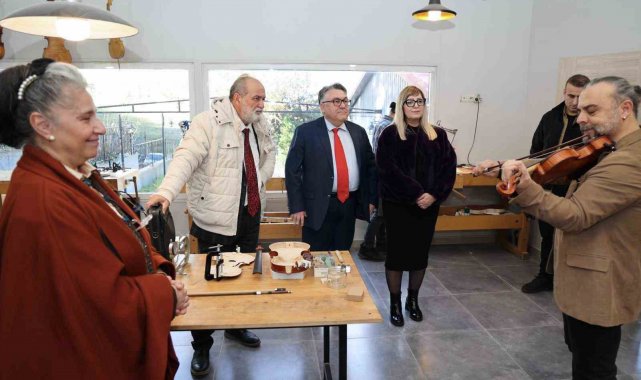 Rektör Özölçer ile Yazar Dr. Sait Başer, BEUN Çalgı Yapım Atölyesini ziyaret etti
