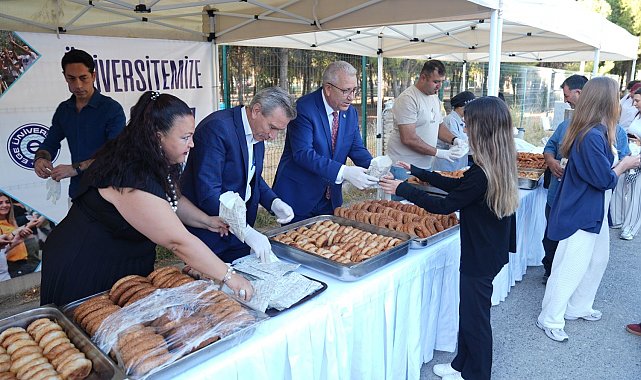 Ege Üniversitesinde yeni eğitim-öğretim yılının başlaması üzerine öğrencileri kampüs girişinde karşılayan Rektör Prof. Dr. Necdet Budak, boyoz, gevrek ve çay ikramında bulundu.