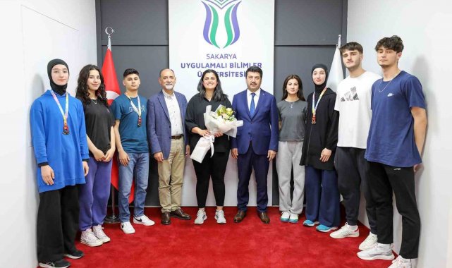 Sakarya Uygulamalı Bilimler Üniversitesi (SUBÜ) Rektörü Prof. Dr. Mehmet Sarıbıyık, Türkiye Üniversite Sporları Federasyonu (TÜSF) tarafından düzenlenen Üniversiteler Ligi Türkiye Karate Şampiyonası ve Üniversiteler Ligi Türkiye Taekwondo Şampiyonası'nda derece kazanan SUBÜ öğrencilerini ağırlayarak tebrik etti. Gerçekleşen ziyarette sporcu öğrencilere Spor Bilimleri Fakültesi Dekanı Prof. Dr. Nevzat Mirzeoğlu, Sağlık Kültür ve Spor Daire Başkanı Dr. Orhan Yılmaz ile sporcu antrenörleri Öğretim Görevlisi Esra Atış ve Ayşe Pınar Demir eşlik etti. Elde edilen başarılar için sporcuları kutlayan Rektör Sarıbıyık, sporcu antrenörleri Öğretim Görevlisi Esra Atış ve Ayşe Pınar Demir'e günün anısına çiçek takdim etti. SUBÜ'lü öğrenciler Üniversiteler Ligi Türkiye Karate Şampiyonası'nı yedisi altın, ikisi gümüş, altısı bronz olmak üzere 15 madalya ve biri birincilik, biri üçüncülük olmak üzere 2 kupa ile tamamlamış, Üniversiteler Ligi Türkiye Taekwondo Şampiyonası'nda ise üç bronz madalyanın sahibi olmuştu.