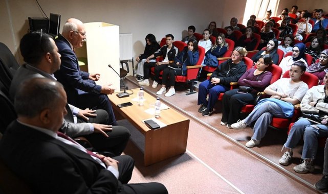 Öğrencilerden sonra akademisyenlerle bir toplantı yapan Rektör Savaş, Eşme MYO Müdürü Öğretim Görevlisi Salih Sezer'den meslek yüksekokulunun mevcut durumu hakkında bilgi aldı.