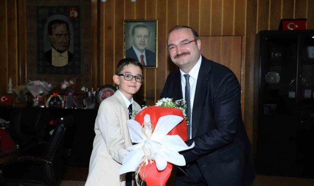 Gazi Mustafa Kemal Atatürk'ün çocuklara armağan ettiği bu özel günde, temsili devir teslim töreni çerçevesinde, Atatürk Üniversitesi Rektörü Prof. Dr. Ahmet Hacımüftüoğlu koltuğunu bir günlüğüne Vakıf Okulları 5. sınıf öğrencisi Ahmet Enes Sağlam'a devretti.