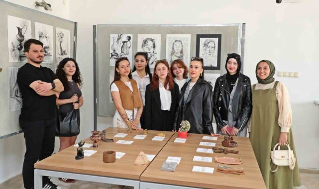 Dr. Öğr. Üyesi Esra Dereli'nin küratörlüğünde düzenlenen sergide; sanat tarihi, sanat teknolojileri ve resim atölyesi derslerinde üretilen eserler yer aldı. Paleolitik ve Neolitik dönem ile Mısır ve Mezopotamya medeniyetlerinden esinlenerek hazırlanan 3 boyutlu kil, metal ve ahşap tasarımlar dikkat çekerken; Doç. Dr. Azize Reva Boynukalın yürütücülüğünde lavi, suluboya, pastel ve akrilik tekniklerle yapılmış natürmortlar, manzaralar ve Cezanne röprodüksiyonları sergilendi. Tuba Kınay Oğuzcan'ın yürütücülüğünde oluşturulan çizgi portre çalışmaları da sergiye çeşitlilik kattı.