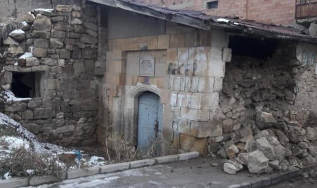 Restorasyon kapsamına alınması planlanan tarihi Galer Hamamı yıkılıyor