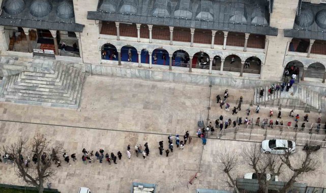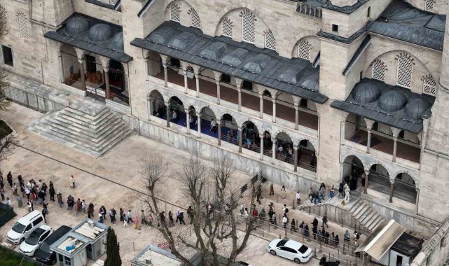 Sultanahmet Camii'nde restorasyon çalışmalarının tamamlanmasının ardından artan ilgiyle birlikte cami çevresinde uzun ziyaretçi kuyrukları oluştu. Tarihi ibadethane havadan görüntülenirken, yerli ve yabancı turistlerin yoğunluğu dikkat çekti.
