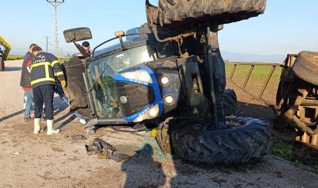 Hatay'ın Reyhanlı ilçesinde sürücüsünün direksiyon hakimiyetini kaybetmesiyle devrilen traktörün sürücüsü yaralandı.