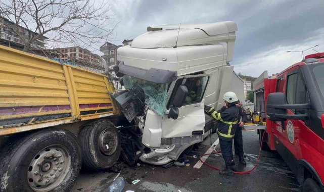 Rize'de arıza yaptığı için park halinde olan tıra başka bir tır çarptı: 1'i ağır 4 yaralı