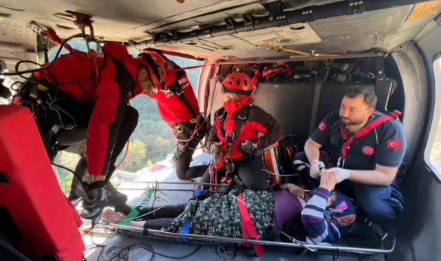 Rize'de geçtiğimiz hafta sonu yaşanan şiddetli yağışlar sonrasında yolu kapanan Ardeşen ilçesi Nolaşkari Yaylasında mahsur kalarak göğüs ve ayaklarından rahatsızlanan 91 yaşındaki yaşlı kadın Ayder Yaylası'na getirilerek askeri helikopterle alınıp hastaneye sevk edildi.