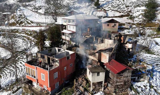 Rize'nin Hemşin ilçesinde çıkan yangında 2 ev tamamen yanarken 1 evde de hasar oluştu.