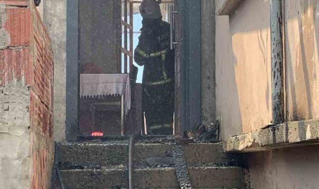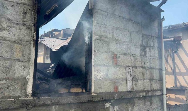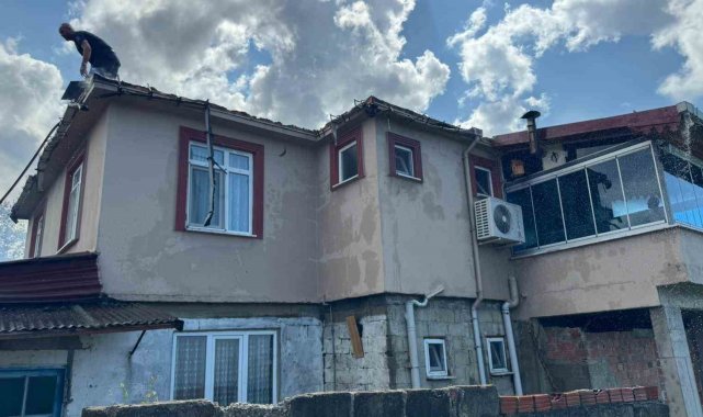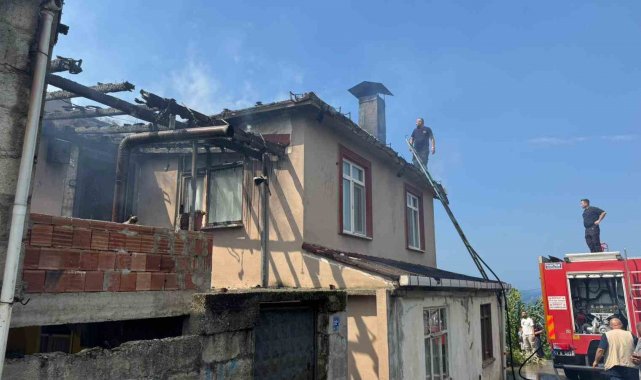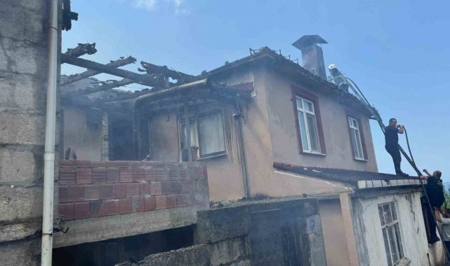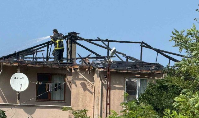 Rize'nin Pazar ilçesinde çıkan yangında bir evin çatısı küle döndü.
