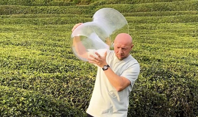 Rize'de dev çay bardağıyla yapılan çekim olay oldu: İzleyenler yapay zeka sandı