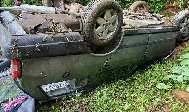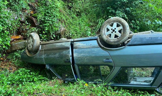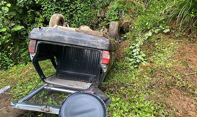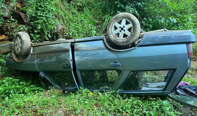 Rize'de freni patlayan Tofaş otomobil yamaca çarpıp takla attı, kazada 3 kişi yaralandı.
