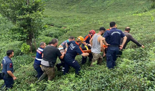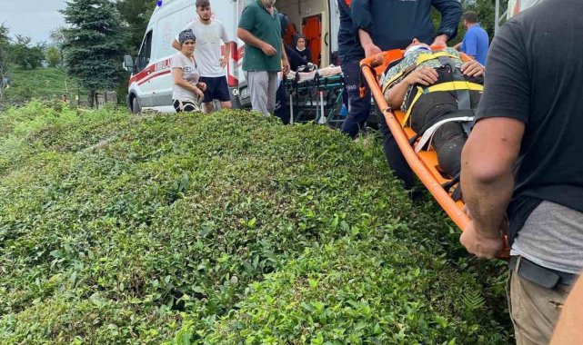 Rize'de çay topladığı sırada üzerine ilkel teleferiğin taşıyıcı kısmı düşen kadın yaralandı.