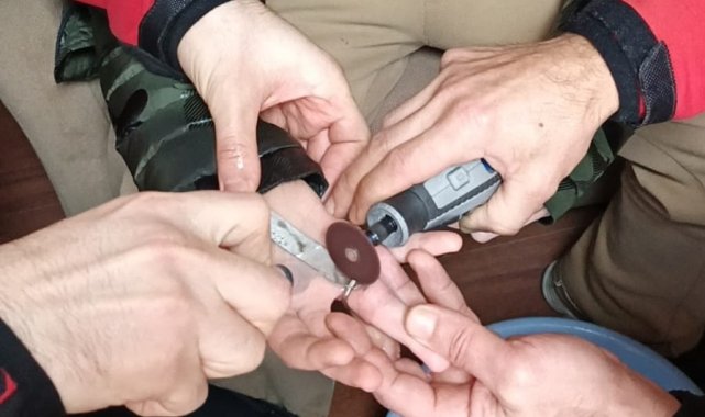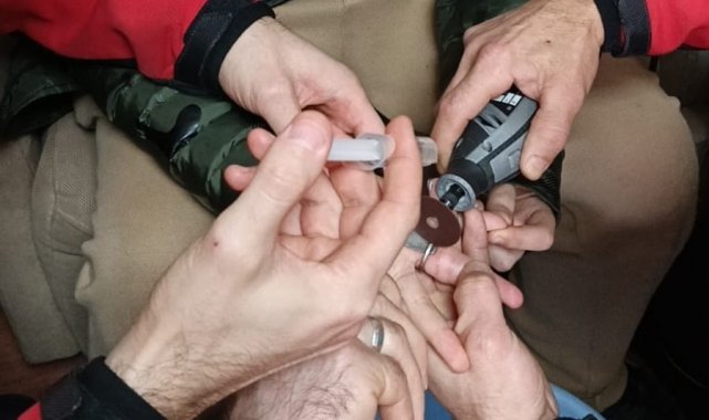 İtfaiye ekipleri, çocuğun parmağındaki kan dolaşımının daha fazla etkilenmemesi için hızla harekete geçti. Ekipler, çocuğun elinin zarar görmemesi için metal halkanın altına koruyucu bir aparat yerleştirdi. Ardından hassas kesici aletler kullanılarak, 50 kuruşluk madeni halka titiz bir çalışmayla kesilerek çıkarıldı.