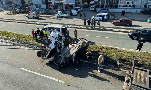Rize'de kaza yapan 2 araç takla attı; o anlar güvenlik kamerasına yansıdı