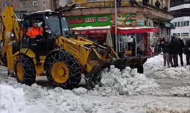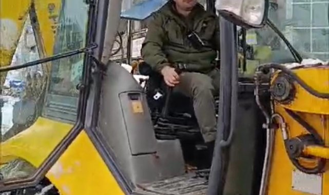 Rize'de görevli komiser iş makinesinin direksiyonuna geçerek belediyenin karla mücadele çalışmalarına destek verdi.