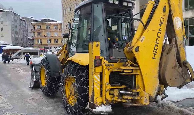 Rize'de komiser iş makinesinin direksiyonuna geçti, karla mücadele etti