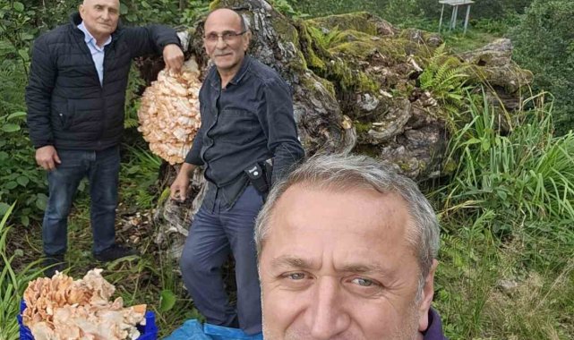 Rize'de ormanda gezintiye çıkan 3 arkadaş ağacın üzerinde kilolarca mantar buldu