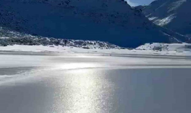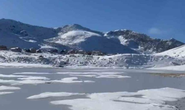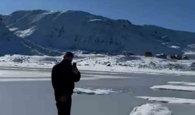 Yetkililer, buz kalınlığının bilinmediğini ve yüzeyin her noktada güvenli olmayabileceğini belirterek vatandaşlara "Göl üzerine çıkmayın" uyarısında bulundu.