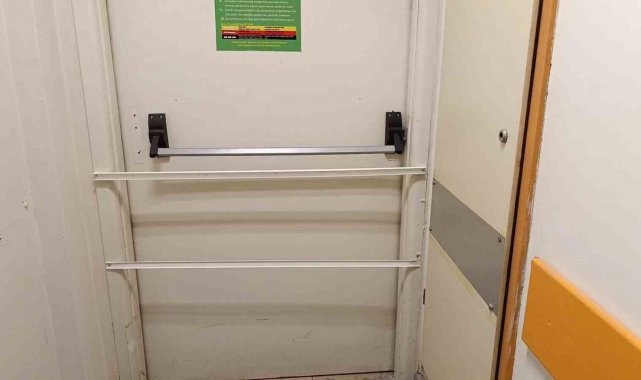 Rize Devlet Hastanesi'nde yangın merdivenlerinin kablo kanalları ile kapatılması vatandaşların tepkilerine neden oldu.