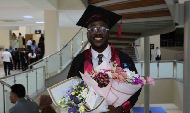Üniversite eğitimi için 7 yıl önce geldiği Rize'de yöre kültürünü öğrenerek sosyal medyada fenomen olan Ganalı genç mezun oldu.
