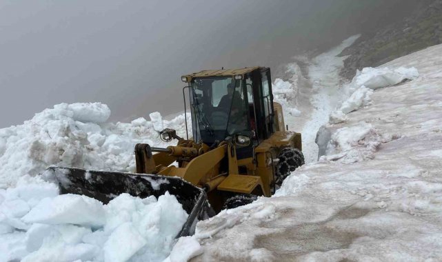 Rize'nin yüksek kesimlerinde yaz mevsimi gelmesine rağmen erimeyerek ulaşıma engel olan kar kütlelerinin temizleme çalışmaları hız kesmeden devam ediyor.