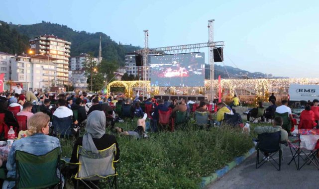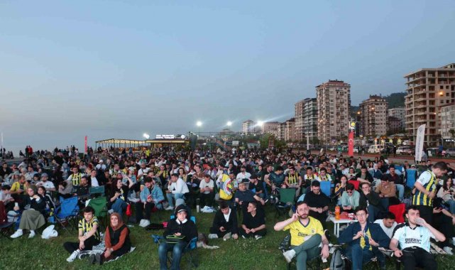 Rize'de vatandaşlar Fenerbahçe-Monaco maçını sahilde kurulan dev ekrandan takip etti.