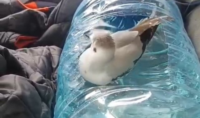 Rize'de minik bir martı ile dostluk kuran Adnan Saymaz'ın görüntüleri izleyenleri tebessüm ettirdi.
