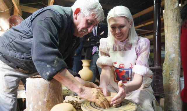 Bulgaristan Rodop Belediye Başkanı Pavel Mihaylov çeşitli ziyaretler için geldiği Bilecik'te ilk defa çömlek tezgahını geçerek çömlek yaptı.