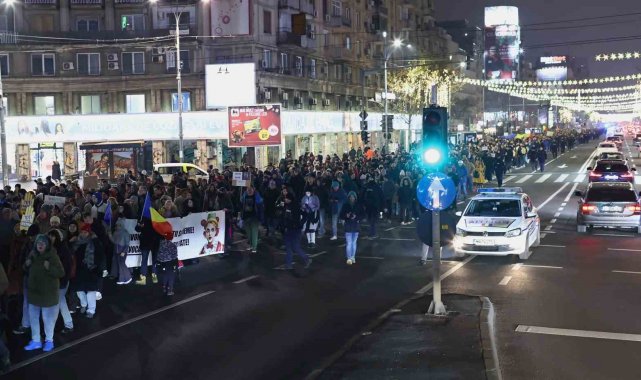 Romanya'nın başkenti Bükreş'te yaklaşık 10 bin kişi, yargıdaki usulsüzlükleri protesto etmek amacıyla yürüyüş düzenlerken, "Adalet, yolsuzluk değil" sloganları attı.