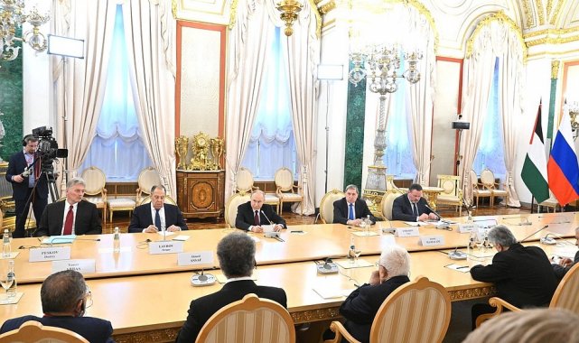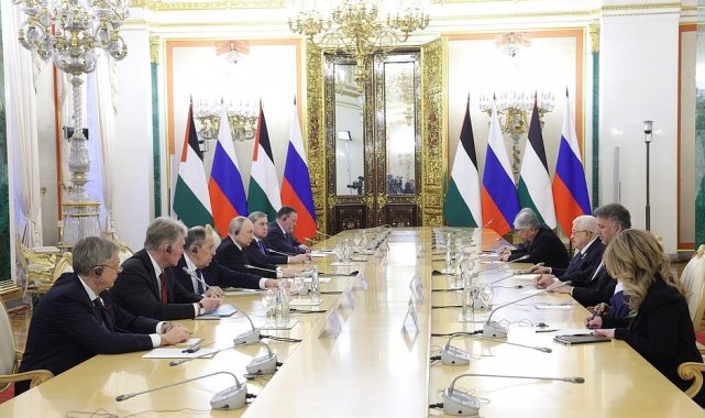 Rusya Devlet Başkanı Vladimir Putin, Filistin Devlet Başkanı Mahmud Abbas ile Moskova'da yaptığı görüşmede, "Bölgede kalıcı barışın, ancak iki halk için iki devlet öngören ve evrensel olarak tanınan uluslararası hukuk temelinde sağlanabileceğine her zaman inandık" dedi.