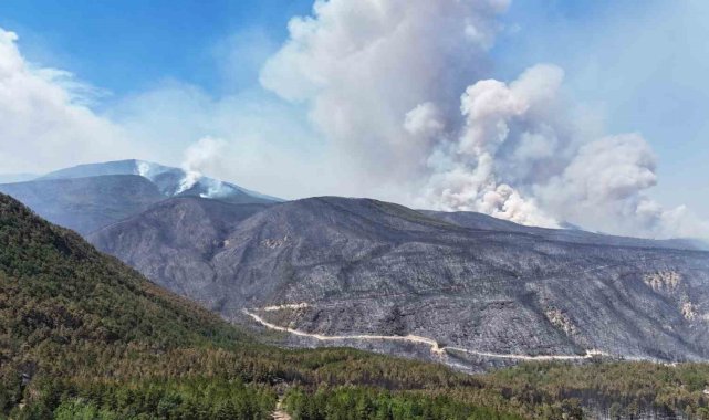 Yaklaşık 45 saattir kontrol altına alınmaya çalışılan alevler engebeli ve dağlık bölgelerdeki farklı noktalarda yeniden rüzgârın etkisiyle kendini göstermeye başladı.