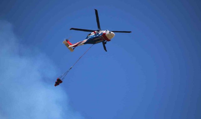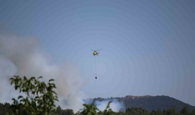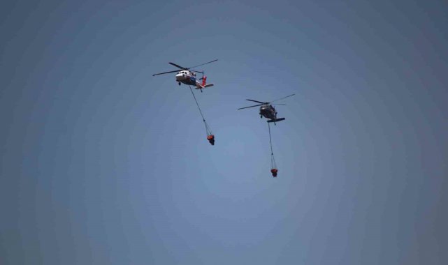 Karabük'te etkili olan orman yangınına helikopterlerin havadan yoğun bir şekilde müdahalesi devam ediyor.