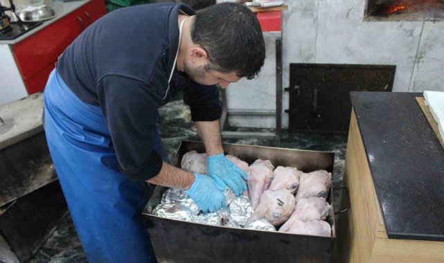 Saatlerce pişiriliyor baltayla yarılarak servis ediliyor